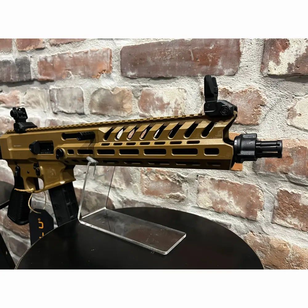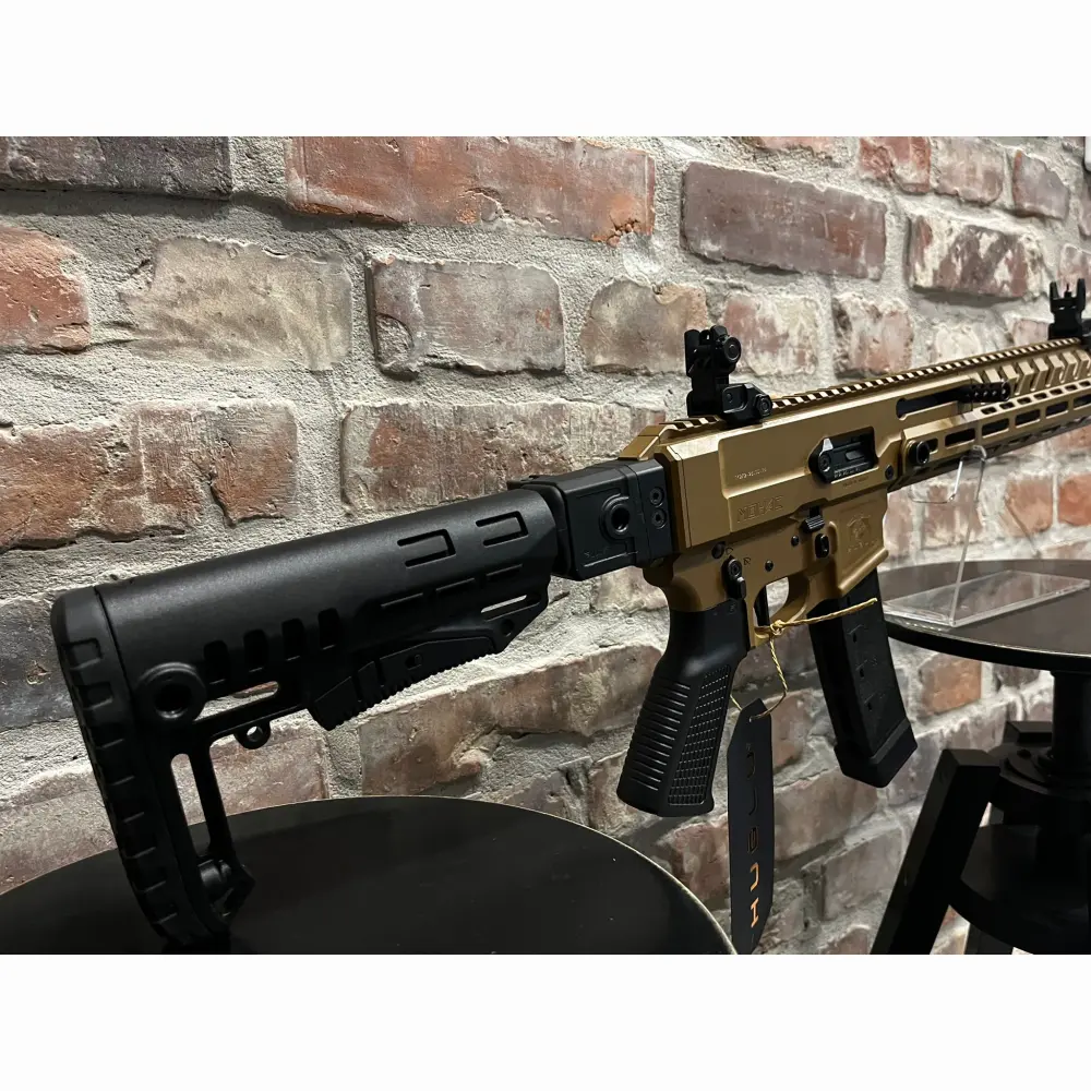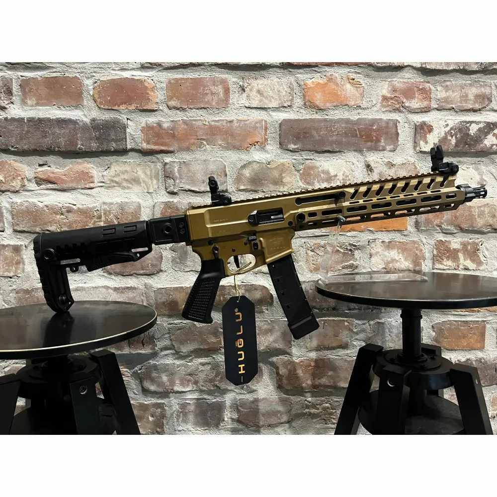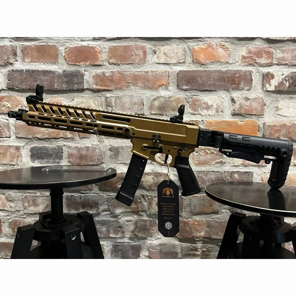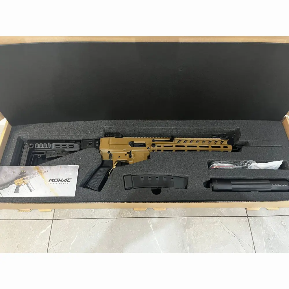Pistolet samopowtarzalny Huglu Mohac kal. 9x19mm PCC FDE, z lufą 12". Kolba rozkładana, rozsuwana w 5 pozycjach, 2x magazynek w standardzie: CZ evo 3+, okładziny szyny x3, przyrządy celownicze, chwyt w milspecu, obustronne manipulatory, skok w lufie 1:10, ilość bruzd 6, gwint na lufie 1/2x28 UNEF, standard milspec do AR