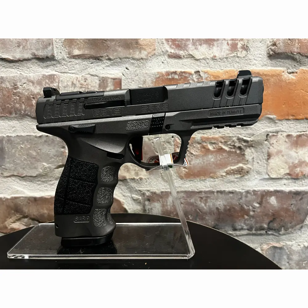 SAR9 GEN3 oferuje szeroki zakres opcji personalizacji, takich jak wymienne panele chwytu i nakładki na chwyt, bezpiecznik manualny oraz szynę Picatinny, która idealnie dopasowuje się do wszelkiego rodzaju akcesoriów. SAR9 trzeciej generacji przenosi bezpieczeństwo na wyższy poziom dzięki blokadzie spustu. Szersze i liczniejsze nacięcia chłodzące, opracowane w celu zapewnienia maksymalnej wydajności przy kolejnych strzałach, umożliwiają chłodzenie lufy pod różnymi kątami. Model SAR9 GEN3 wyposażono w udoskonaloną opcję przygotowania do montażu kolimatora, umożliwiającą korzystanie z niego również za pośrednictwem kompatybilnych przyrządów celowniczych typu co-witness.