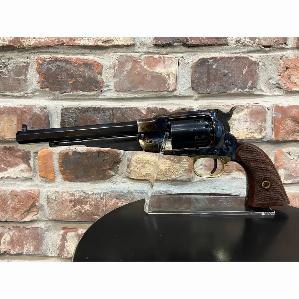 Remington 1858 New Model Army .44, sześciostrzałowy kapiszonowy rewolwer czarnoprochowy firmy Pietta w kalibrze .44, ładowany odprzodowo ze stalową ramą hartowaną ogniowo. Wersja (LC) z moletowanymi okładkami chwytu.